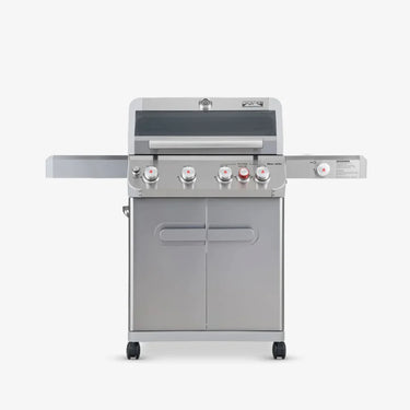 MESA 415BZ is your secret weapon in cooking with the precise balance of consistent and rapid heat. Boasting 4 stainless steel burners, a dedicated sear burner, and a convenient side burner, this compact powerhouse packs a punch with 62,000 BTUs, offering ample space to grill a 22-pound turkey, 23 burgers, or a medley of meats and vegetables simultaneously of total 630 sq.in cooking area.
