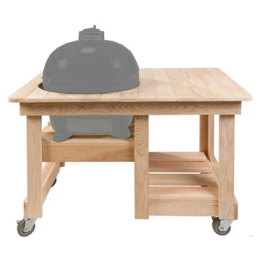 Designed for the outdoor chef who needs more space and who enjoys the beauty of a wood table. Comes unfinished. Ceramic shoes included.