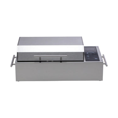 The Frontier Portable brings you the look and feel of the built-in version, with the convenience of portability. This tabletop grill can be used on any surface without worrying if it will burn the counter underneath. The compact grill does not emit any residual heat from the bottom or sides of the grill so even the thinnest plastic tablecloth will be safe for use with your grill. Featuring the 1300-Watt element, this grill will exceed temperatures of 5500F. UL approved for use indoors and out, you will never be left in the cold like your gas and charcoal-grilling friends!