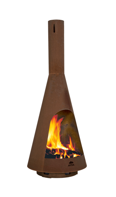 El Jøtul Frøya está diseñado para soportar todo tipo de clima durante todo el año y hacer que su espacio al aire libre sea aún más acogedor. La construcción de acero Corten es conocida por resistir la lluvia, la nieve y el viento. La capa superior forma una pátina que protege las capas inferiores contra el óxido y la corrosión; el material también tiene una excelente resistencia a la tracción. La forma alta y estrecha le permite colocar un fuego más grande en casi cualquier tamaño de patio. También se puede adaptar a los patios, con su chimenea ventilada para controlar el flujo de humo y dirigirlo hacia arriba.
